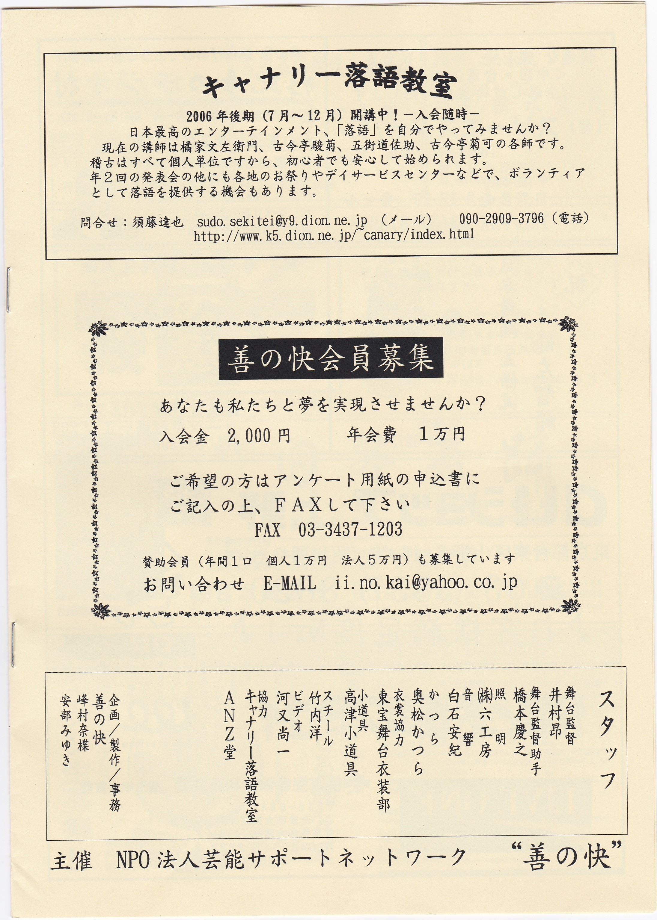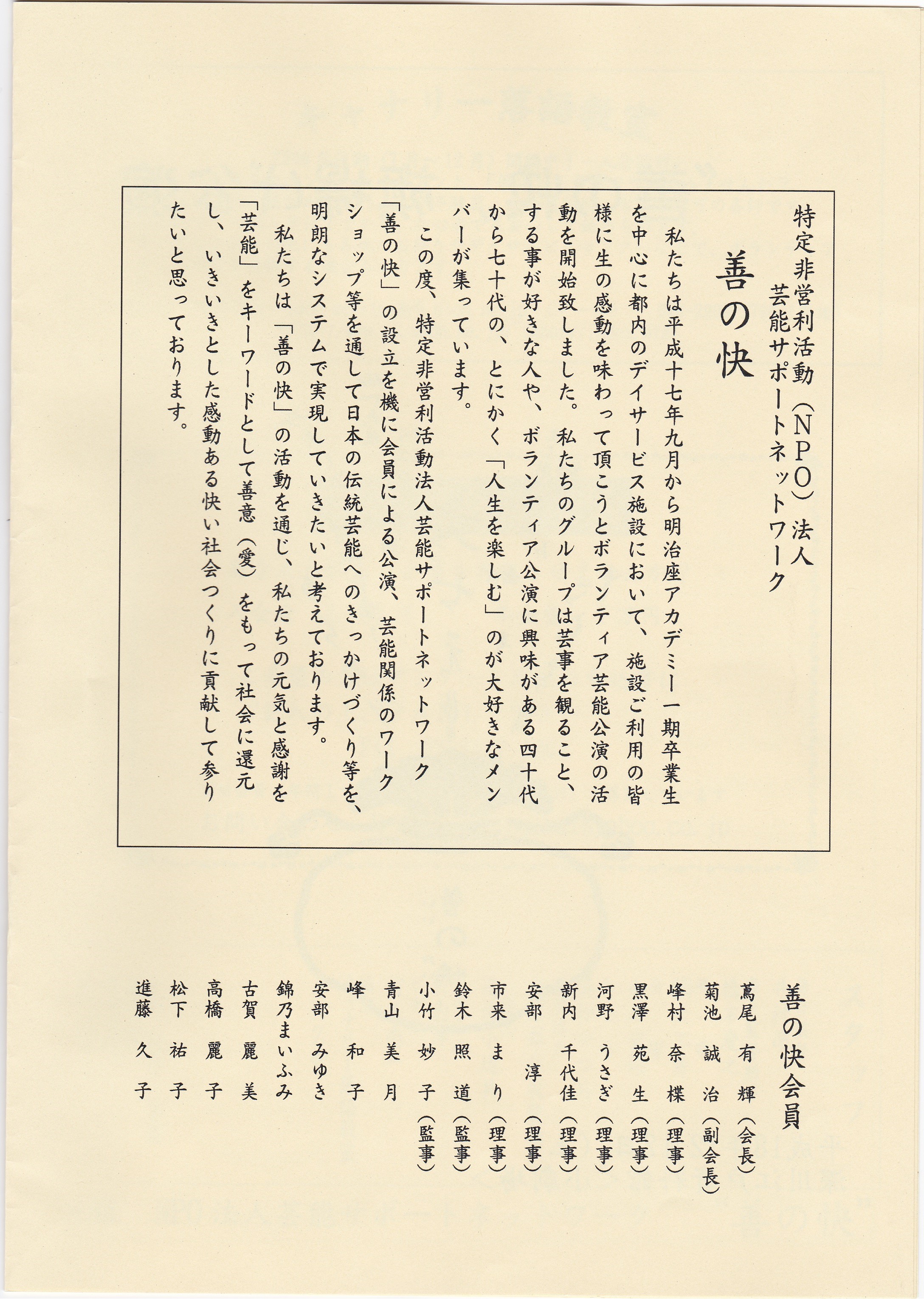 NPO法人 芸能サポートネットワーク善の快(いいのかい)