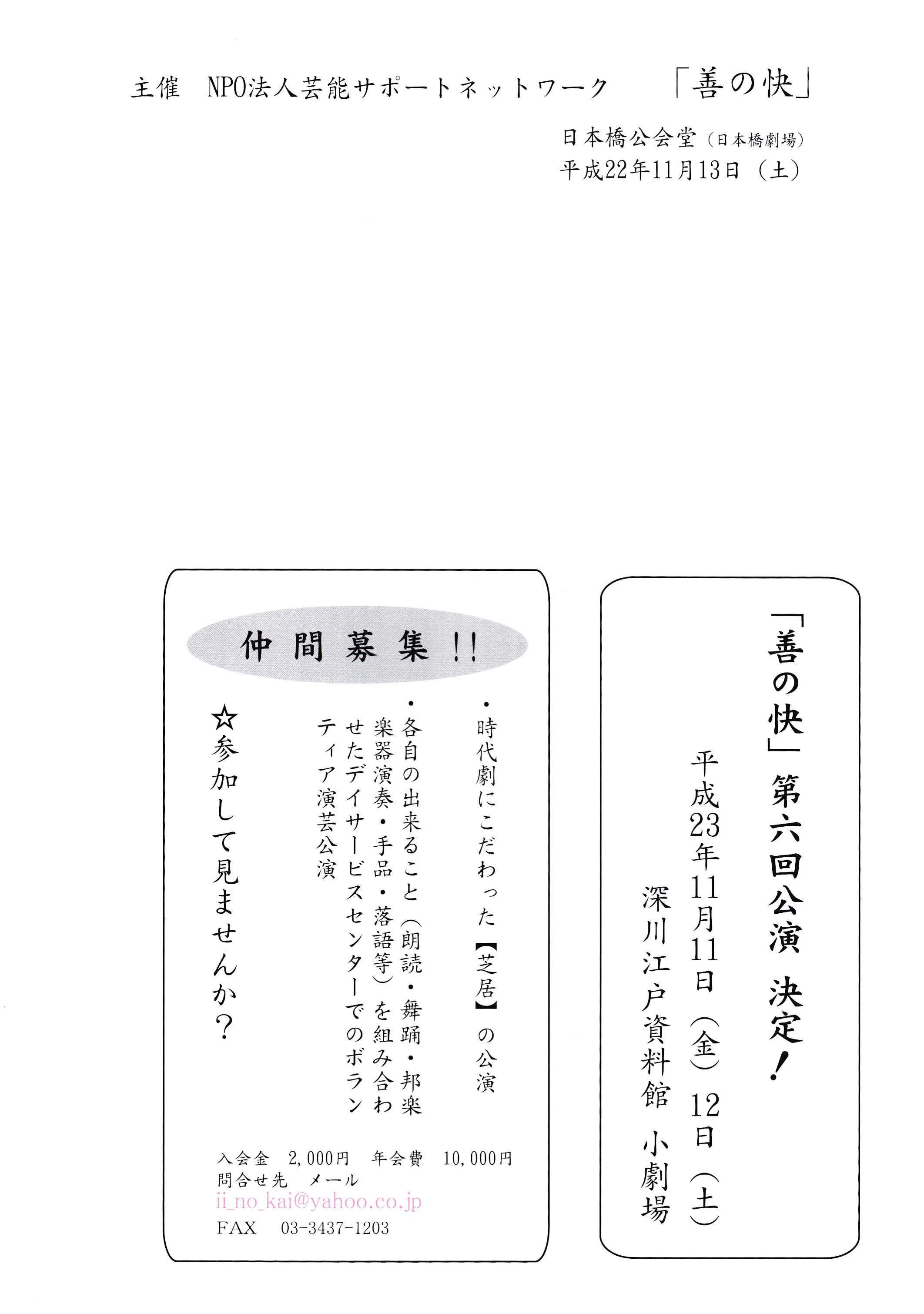 NPO法人 芸能サポートネットワーク善の快(いいのかい)